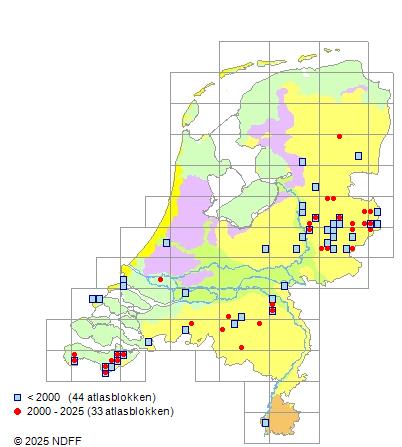 CC BY-NC-SA 3.0 NLVerspreidingNederlandZeer zeldzaam in Zeeland, Noord-Brabant, de kalkrijke duinen, Gelderland en in het oosten van het land. Vroeger ook in Zuid-Limburg.