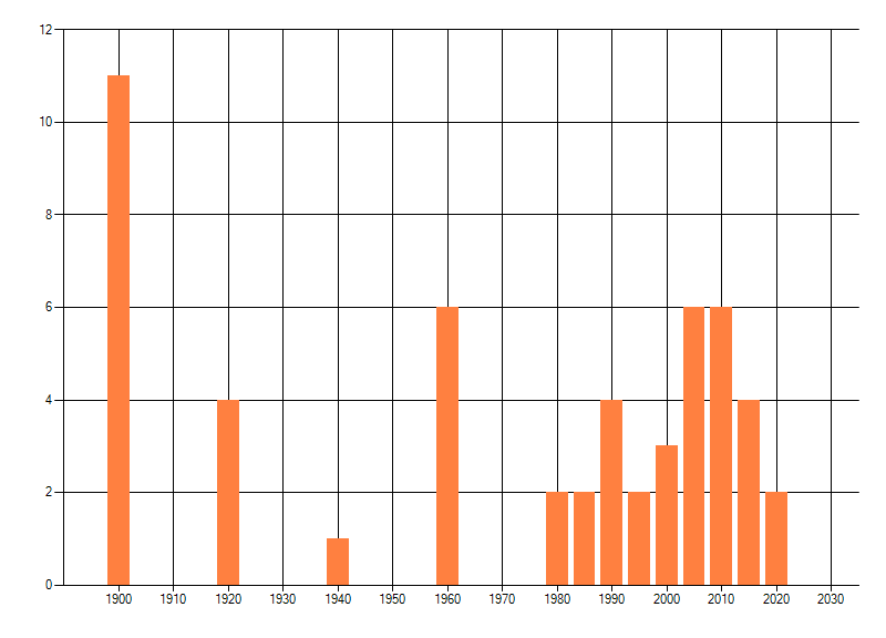 Het aantal atlasblokken (5x5 km) waarin de soort is gemeld binnen een periode van vijf jaar (vanaf 1980) of twintig jaar. Niet gecorrigeerd voor waarnemersinspanning en het aantal doorgegeven waarnemingen kan sterk variëren per periode, dus een trend in verspreiding kan hier niet direct uit worden afgelezen. Het opgegeven jaartal is het eerste jaar van de periode. Bron: gevalideerde waarnemingen uit de NDFF.
