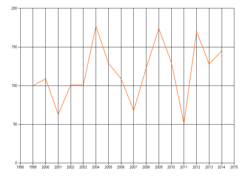 Trend in het geschatte aantal individuen van paddenstoelen in bossen op de hoge zandgronden, weergegeven als indexcijfer (eerste jaar = 100). Bron: