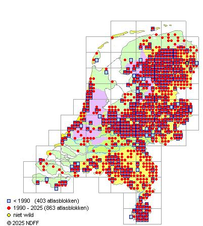 Bron: FLORON - Gemodelleerd op basis van waarnemingen uit de NDFF voor de periode 2000-2021.
