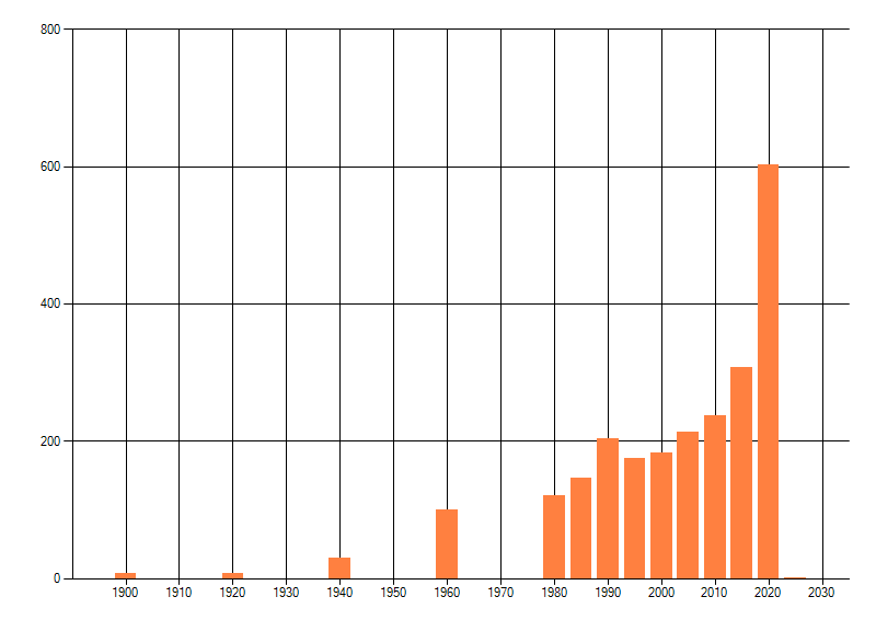 Het aantal atlasblokken (5x5 km) waarin de soort is gemeld binnen een periode van vijf jaar (vanaf 1980) of twintig jaar. Niet gecorrigeerd voor waarnemersinspanning en het aantal doorgegeven waarnemingen kan sterk variëren per periode, dus een trend in verspreiding kan hier niet direct uit worden afgelezen. Het opgegeven jaartal is het eerste jaar van de periode. Bron: gevalideerde waarnemingen uit de NDFF.