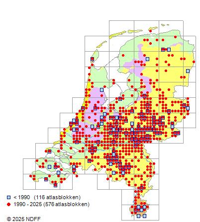 Vrij alg., vooral in F, Z, S, K en G; zeld. in H, R, D en Y, ontbreekt in W. Kaart in Nauta & Vellinga, Atlas. 1995.