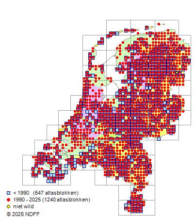 Bron: FLORON - Gemodelleerd op basis van waarnemingen uit de NDFF voor de periode 2000-2021.