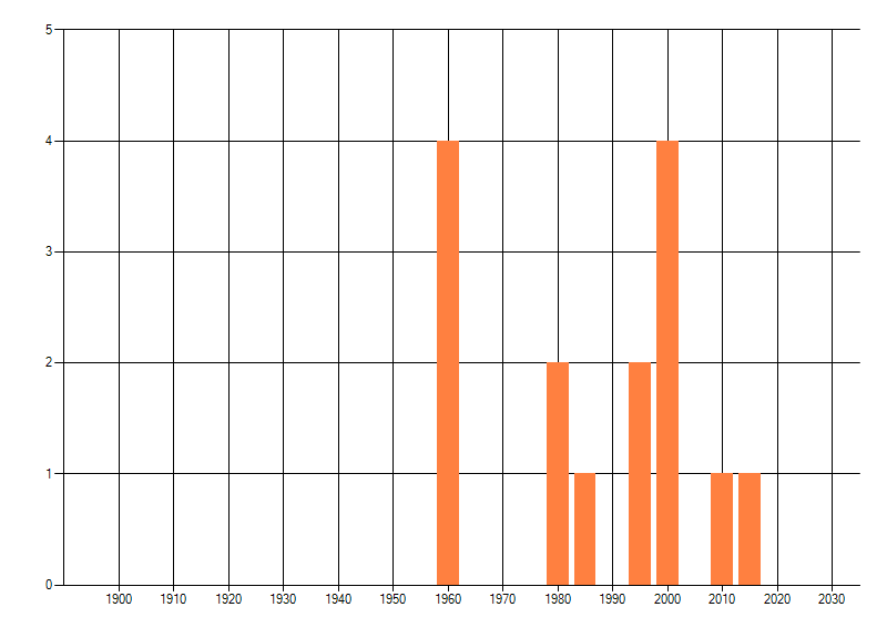 Het aantal atlasblokken (5x5 km) waarin de soort is gemeld binnen een periode van vijf jaar (vanaf 1980) of twintig jaar. Niet gecorrigeerd voor waarnemersinspanning en het aantal doorgegeven waarnemingen kan sterk variëren per periode, dus een trend in verspreiding kan hier niet direct uit worden afgelezen. Het opgegeven jaartal is het eerste jaar van de periode. Bron: gevalideerde waarnemingen uit de NDFF.