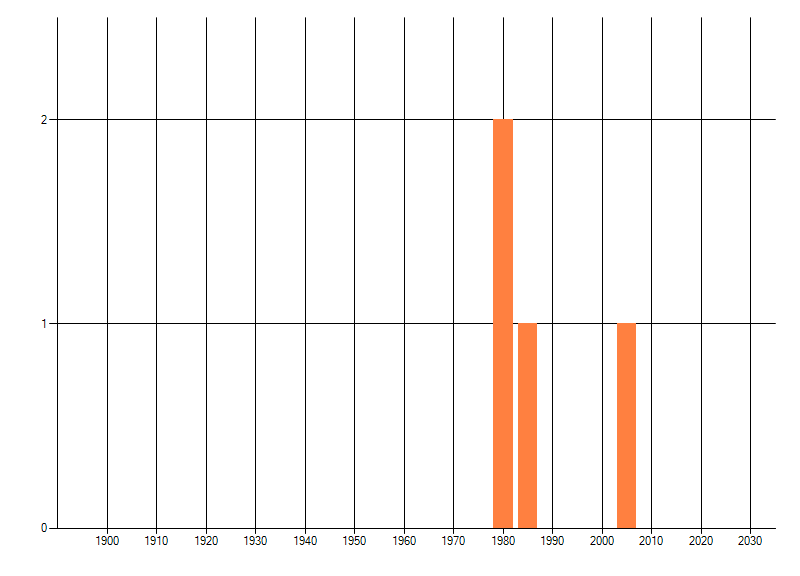 Het aantal atlasblokken (5x5 km) waarin de soort is gemeld binnen een periode van vijf jaar (vanaf 1980) of twintig jaar. Niet gecorrigeerd voor waarnemersinspanning en het aantal doorgegeven waarnemingen kan sterk variëren per periode, dus een trend in verspreiding kan hier niet direct uit worden afgelezen. Het opgegeven jaartal is het eerste jaar van de periode. Bron: gevalideerde waarnemingen uit de NDFF.