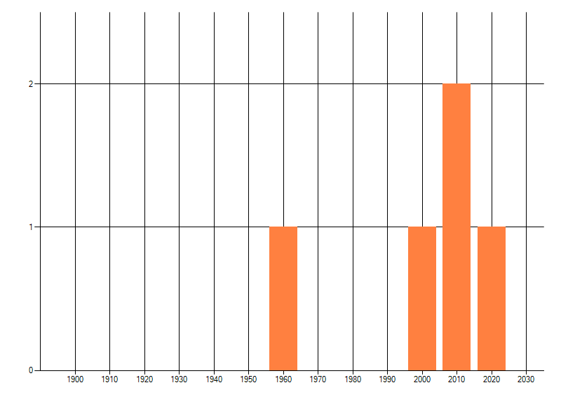 Het aantal atlasblokken (5x5 km) waarin de soort is gemeld binnen een periode van vijf jaar (vanaf 1980) of twintig jaar. Niet gecorrigeerd voor waarnemersinspanning en het aantal doorgegeven waarnemingen kan sterk variëren per periode, dus een trend in verspreiding kan hier niet direct uit worden afgelezen. Het opgegeven jaartal is het eerste jaar van de periode. Bron: gevalideerde waarnemingen uit de NDFF.