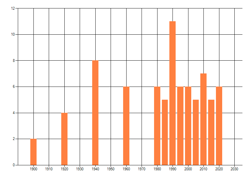 Het aantal atlasblokken (5x5 km) waarin de soort is gemeld binnen een periode van vijf jaar (vanaf 1980) of twintig jaar. Niet gecorrigeerd voor waarnemersinspanning en het aantal doorgegeven waarnemingen kan sterk variëren per periode, dus een trend in verspreiding kan hier niet direct uit worden afgelezen. Het opgegeven jaartal is het eerste jaar van de periode. Bron: gevalideerde waarnemingen uit de NDFF.