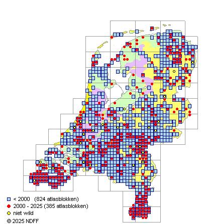 CC BY-NC-SA 3.0 NLVerspreidingNederlandVrij zeldzaam. Het meest nog in het zuidoosten van het land, in Zuid-Limburg, Groningen, de Betuwe, de Wieringermeerpolder en in Zeeuwsch-Vlaanderen.