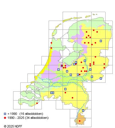 Vroeger zeld. in G, K en S, thans uiterst zeld., na 1980 uit drie uurhokken bekend.