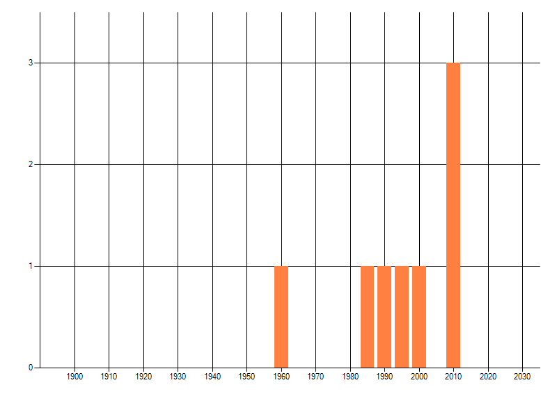 Het aantal atlasblokken (5x5 km) waarin de soort is gemeld binnen een periode van vijf jaar (vanaf 1980) of twintig jaar. Niet gecorrigeerd voor waarnemersinspanning en het aantal doorgegeven waarnemingen kan sterk variëren per periode, dus een trend in verspreiding kan hier niet direct uit worden afgelezen. Het opgegeven jaartal is het eerste jaar van de periode. Bron: gevalideerde waarnemingen uit de NDFF.
