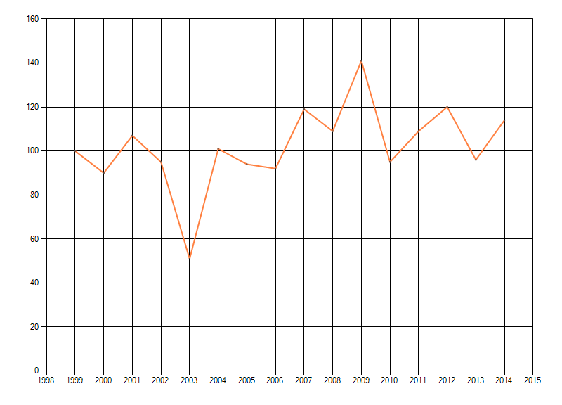 Trend in het geschatte aantal individuen van paddenstoelen in bossen op de hoge zandgronden, weergegeven als indexcijfer (eerste jaar = 100). Bron: