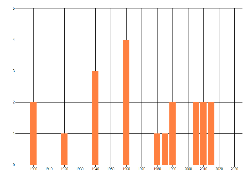 Het aantal atlasblokken (5x5 km) waarin de soort is gemeld binnen een periode van vijf jaar (vanaf 1980) of twintig jaar. Niet gecorrigeerd voor waarnemersinspanning en het aantal doorgegeven waarnemingen kan sterk variëren per periode, dus een trend in verspreiding kan hier niet direct uit worden afgelezen. Het opgegeven jaartal is het eerste jaar van de periode. Bron: gevalideerde waarnemingen uit de NDFF.