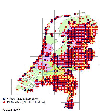 Bron: FLORON - Gemodelleerd op basis van waarnemingen uit de NDFF voor de periode 2000-2021.