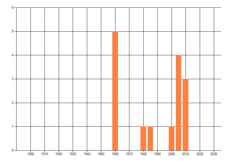 Het aantal atlasblokken (5x5 km) waarin de soort is gemeld binnen een periode van vijf jaar (vanaf 1980) of twintig jaar. Niet gecorrigeerd voor waarnemersinspanning en het aantal doorgegeven waarnemingen kan sterk variëren per periode, dus een trend in verspreiding kan hier niet direct uit worden afgelezen. Het opgegeven jaartal is het eerste jaar van de periode. Bron: gevalideerde waarnemingen uit de NDFF.