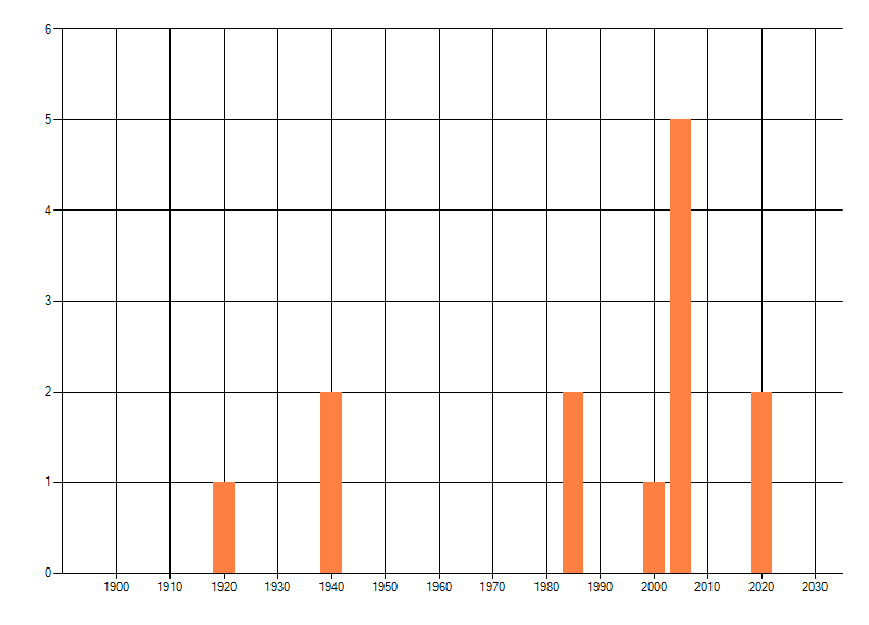 Het aantal atlasblokken (5x5 km) waarin de soort is gemeld binnen een periode van vijf jaar (vanaf 1980) of twintig jaar. Niet gecorrigeerd voor waarnemersinspanning en het aantal doorgegeven waarnemingen kan sterk variëren per periode, dus een trend in verspreiding kan hier niet direct uit worden afgelezen. Het opgegeven jaartal is het eerste jaar van de periode. Bron: gevalideerde waarnemingen uit de NDFF.