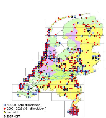 Bron: FLORON - Gemodelleerd op basis van waarnemingen uit de NDFF voor de periode 2000-2021.