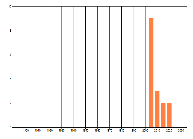 Het aantal atlasblokken (5x5 km) waarin de soort is gemeld binnen een periode van vijf jaar (vanaf 1980) of twintig jaar. Niet gecorrigeerd voor waarnemersinspanning en het aantal doorgegeven waarnemingen kan sterk variëren per periode, dus een trend in verspreiding kan hier niet direct uit worden afgelezen. Het opgegeven jaartal is het eerste jaar van de periode. Bron: gevalideerde waarnemingen uit de NDFF.