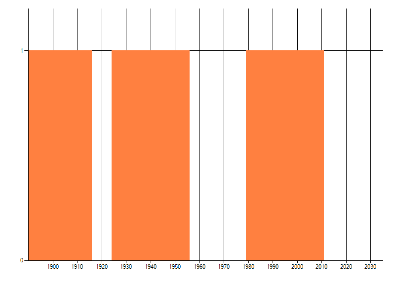 Het aantal atlasblokken (5x5 km) waarin de soort is gemeld binnen een periode van vijf jaar (vanaf 1980) of twintig jaar. Niet gecorrigeerd voor waarnemersinspanning en het aantal doorgegeven waarnemingen kan sterk variëren per periode, dus een trend in verspreiding kan hier niet direct uit worden afgelezen. Het opgegeven jaartal is het eerste jaar van de periode. Bron: gevalideerde waarnemingen uit de NDFF.