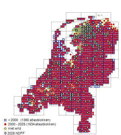 Bron: FLORON - Gemodelleerd op basis van waarnemingen uit de NDFF voor de periode 2000-2021.