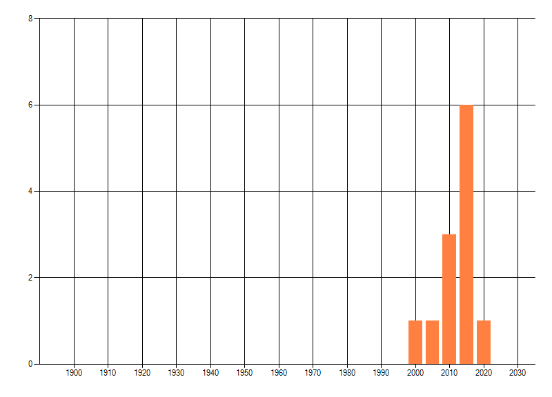 Het aantal atlasblokken (5x5 km) waarin de soort is gemeld binnen een periode van vijf jaar (vanaf 1980) of twintig jaar. Niet gecorrigeerd voor waarnemersinspanning en het aantal doorgegeven waarnemingen kan sterk variëren per periode, dus een trend in verspreiding kan hier niet direct uit worden afgelezen. Het opgegeven jaartal is het eerste jaar van de periode. Bron: gevalideerde waarnemingen uit de NDFF.