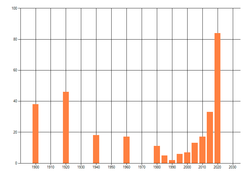 dus een trend in verspreiding kan hier niet direct uit worden afgelezen. Het opgegeven jaartal is het eerste jaar van de