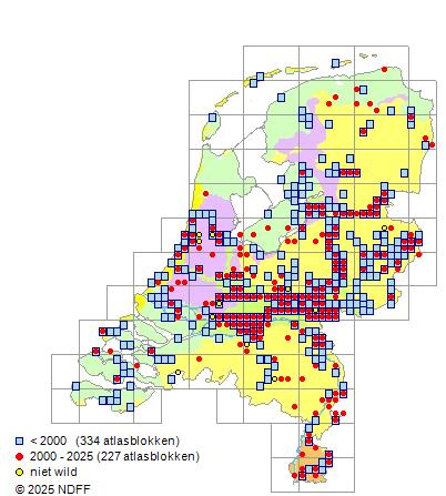 Bron: FLORON - Gemodelleerd op basis van waarnemingen uit de NDFF voor de periode 2000-2021.