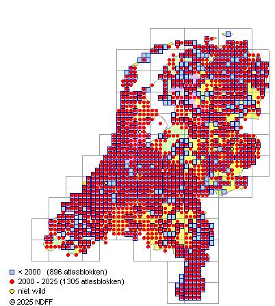 Bron: FLORON - Gemodelleerd op basis van waarnemingen uit de NDFF voor de periode 2000-2021.