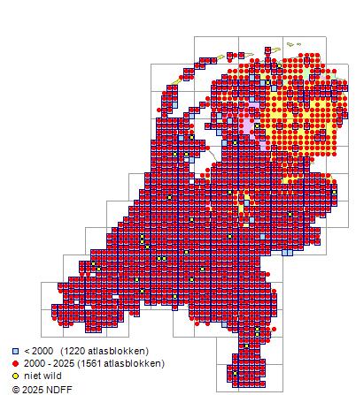Bron: FLORON - Gemodelleerd op basis van waarnemingen uit de NDFF voor de periode 2000-2021.