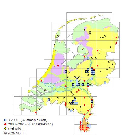Bron: FLORON - Gemodelleerd op basis van waarnemingen uit de NDFF voor de periode 2000-2021.