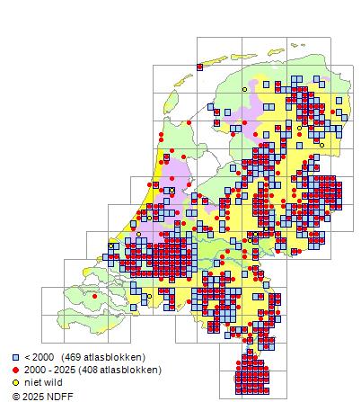 Bron: FLORON - Gemodelleerd op basis van waarnemingen uit de NDFF voor de periode 2000-2021.