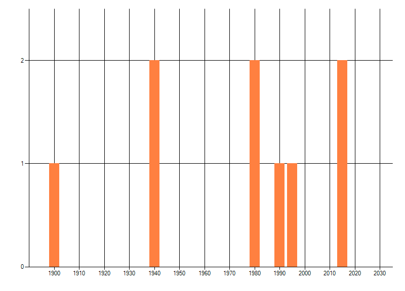 Het aantal atlasblokken (5x5 km) waarin de soort is gemeld binnen een periode van vijf jaar (vanaf 1980) of twintig jaar. Niet gecorrigeerd voor waarnemersinspanning en het aantal doorgegeven waarnemingen kan sterk variëren per periode, dus een trend in verspreiding kan hier niet direct uit worden afgelezen. Het opgegeven jaartal is het eerste jaar van de periode. Bron: gevalideerde waarnemingen uit de NDFF.