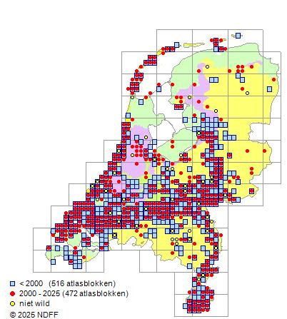 CC BY-NC-SA 3.0 NLVerspreidingNederlandVrij algemeen in de Zeeuwse en Hollandse duinen en in het rivierengebied, vrij zeldzaam in Zuid-Limburg en zeldzaam tot zeer zeldzaam in Zeeland.
