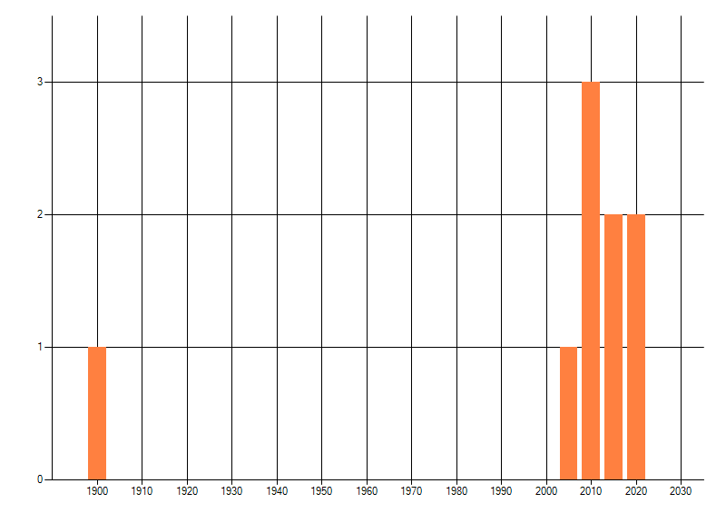 Het aantal atlasblokken (5x5 km) waarin de soort is gemeld binnen een periode van vijf jaar (vanaf 1980) of twintig jaar. Niet gecorrigeerd voor waarnemersinspanning en het aantal doorgegeven waarnemingen kan sterk variëren per periode, dus een trend in verspreiding kan hier niet direct uit worden afgelezen. Het opgegeven jaartal is het eerste jaar van de periode. Bron: gevalideerde waarnemingen uit de NDFF.