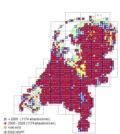 De trend is gecorrigeerd voor waarnemersinspanning en geeft de relatieve verandering in het aantal bezette kilometerhokken weer.