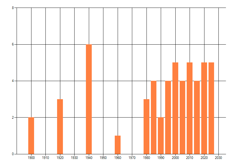 dus een trend in verspreiding kan hier niet direct uit worden afgelezen. Het opgegeven jaartal is het eerste jaar van de
