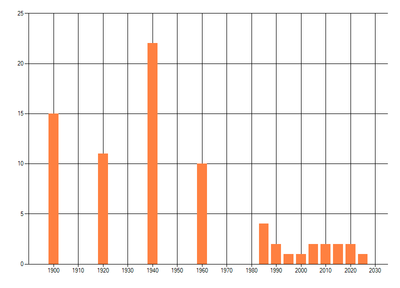 dus een trend in verspreiding kan hier niet direct uit worden afgelezen. Het opgegeven jaartal is het eerste jaar van de