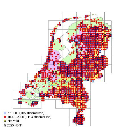 Bron: FLORON - Gemodelleerd op basis van waarnemingen uit de NDFF voor de periode 2000-2021.