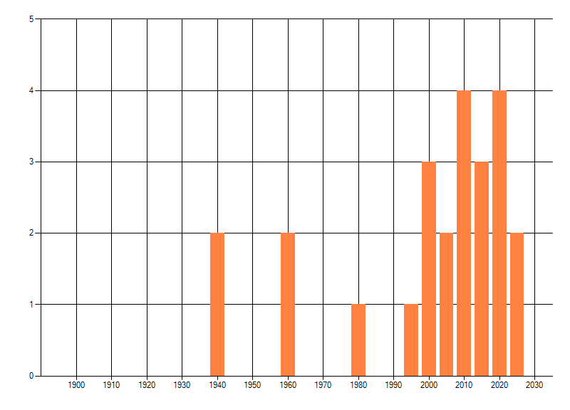 dus een trend in verspreiding kan hier niet direct uit worden afgelezen. Het opgegeven jaartal is het eerste jaar van de