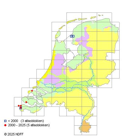 CC BY-NC-SA 3.0 NLVerspreidingNederlandSinds 1960 zeer zeldzaam op de Makkumerwaard aan de Friese IJsselmeerkust. Recenter ook in Zeeuws-Vlaanderen.