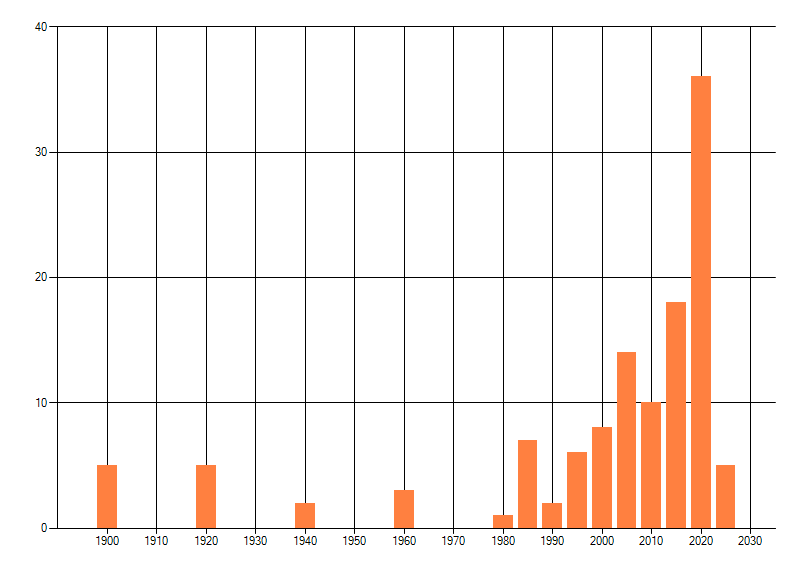 dus een trend in verspreiding kan hier niet direct uit worden afgelezen. Het opgegeven jaartal is het eerste jaar van de