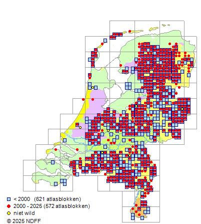 Bron: FLORON - Gemodelleerd op basis van waarnemingen uit de NDFF voor de periode 2000-2021.