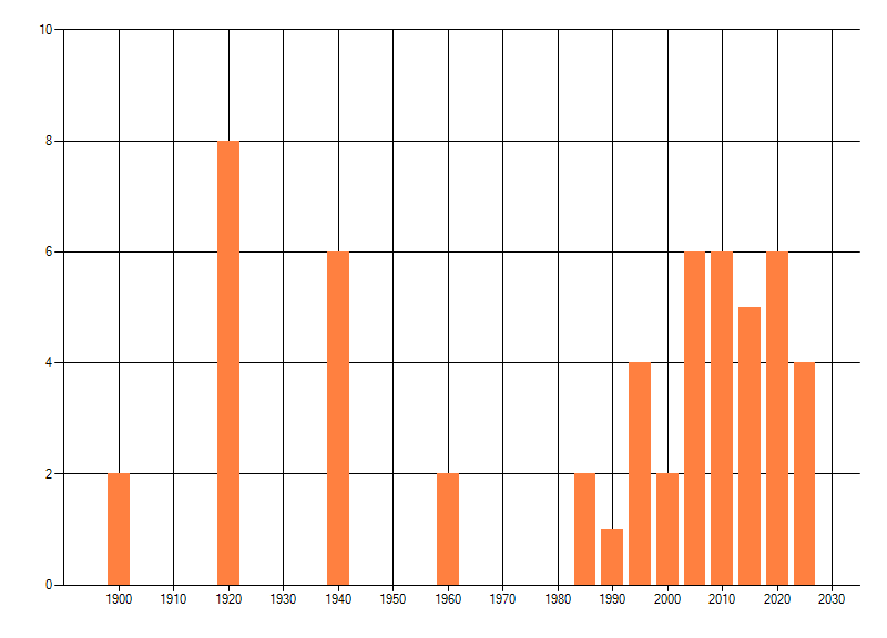 dus een trend in verspreiding kan hier niet direct uit worden afgelezen. Het opgegeven jaartal is het eerste jaar van de
