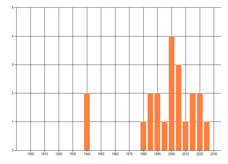 dus een trend in verspreiding kan hier niet direct uit worden afgelezen. Het opgegeven jaartal is het eerste jaar van de