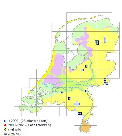 CC BY-NC-SA 3.0 NLVerspreidingNederlandVroeger zeer zeldzaam in Noord-Brabant, de Achterhoek en Drenthe.