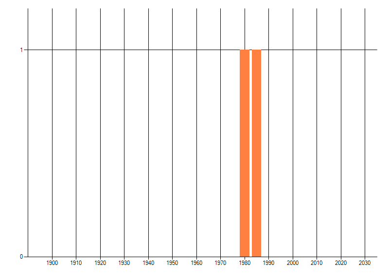 Het aantal atlasblokken (5x5 km) waarin de soort is gemeld binnen een periode van vijf jaar (vanaf 1980) of twintig jaar. Niet gecorrigeerd voor waarnemersinspanning en het aantal doorgegeven waarnemingen kan sterk variëren per periode, dus een trend in verspreiding kan hier niet direct uit worden afgelezen. Het opgegeven jaartal is het eerste jaar van de periode. Bron: gevalideerde waarnemingen uit de NDFF.