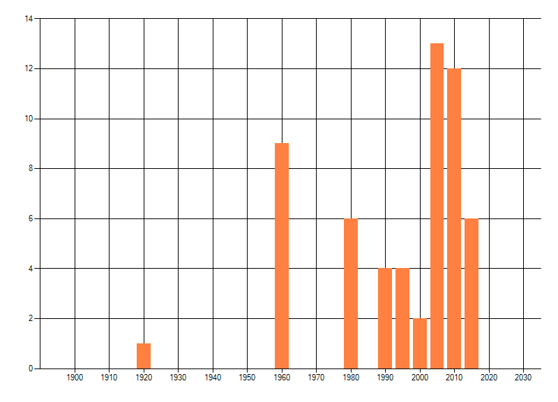 Het aantal atlasblokken (5x5 km) waarin de soort is gemeld binnen een periode van vijf jaar (vanaf 1980) of twintig jaar. Niet gecorrigeerd voor waarnemersinspanning en het aantal doorgegeven waarnemingen kan sterk variëren per periode, dus een trend in verspreiding kan hier niet direct uit worden afgelezen. Het opgegeven jaartal is het eerste jaar van de periode. Bron: gevalideerde waarnemingen uit de NDFF.