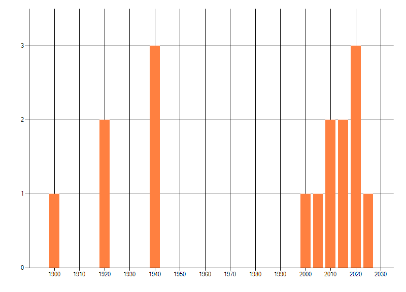 dus een trend in verspreiding kan hier niet direct uit worden afgelezen. Het opgegeven jaartal is het eerste jaar van de