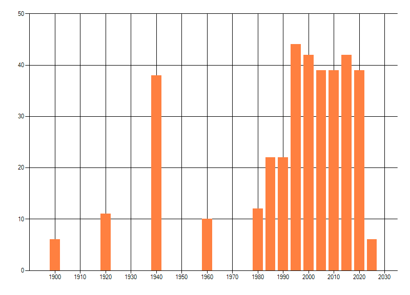dus een trend in verspreiding kan hier niet direct uit worden afgelezen. Het opgegeven jaartal is het eerste jaar van de