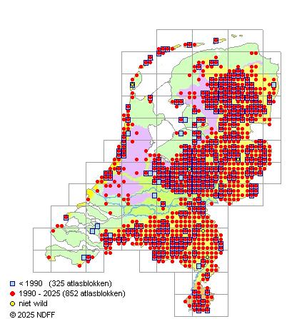 Bron: FLORON - Gemodelleerd op basis van waarnemingen uit de NDFF voor de periode 2000-2021.