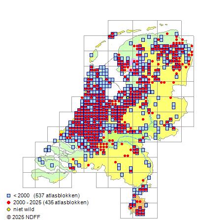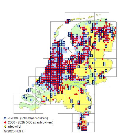CC BY-NC-SA 3.0 NLVerspreidingNederlandVrij algemeen in laagveengebieden, het meest in het Hollands-Utrechtse polderland en plaatselijk in het IJsselmeergebied en zeldzaam in de Hollandse duinen, in het noordelijk zeekleigebied en in Drenthe. Elders zeer zeldzaam.